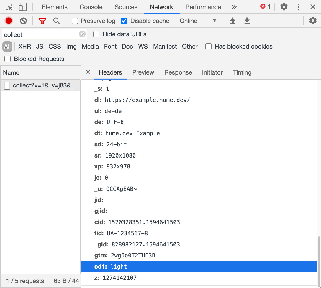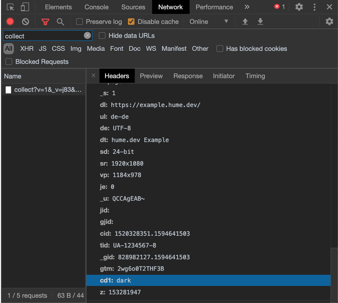 Great, that’s it, you can go ahead and publish your GTM container! If you want to validate right away if your implementation was successful, check our your Google Analytics request to see the custom dimension parameter: