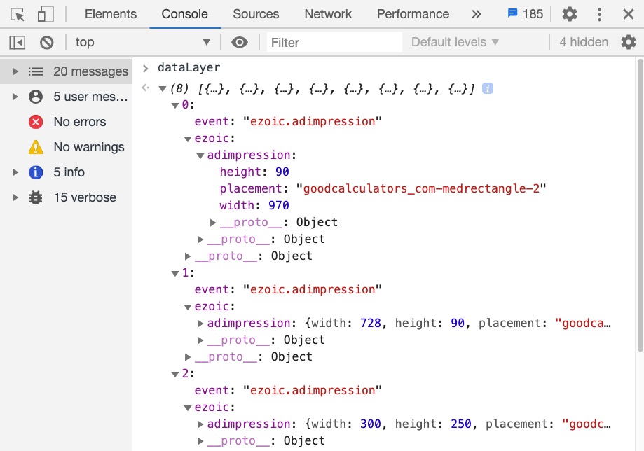 trackEzoicAdImpressiononce the iframe (and our ad in it) has finished loading. trackEzoicAdImpressionwill then get the ad’s size and placement name and push anezoic.adimpressionevent to dataLayer.