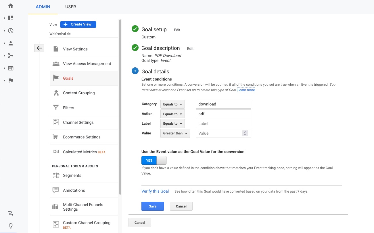 When you create a goal in good old Universal Analytics, you define rules like these in the View Settings: