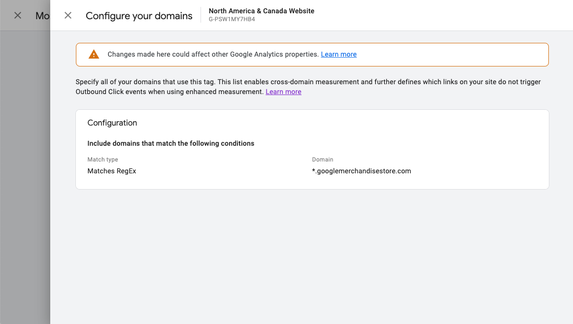 It depends on the RegEx implementation whether this is a valid expression or if it should be .*.googlemerchandisestore.com with a leading dot, but for our self-referral issue that’s irrelevant, I tested multiple different options.