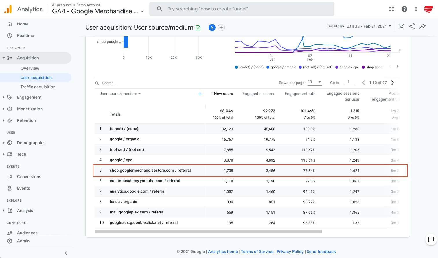 Even Google’s own Merchandise Store has this issue where a significant amount of traffic is attributed to… itself?