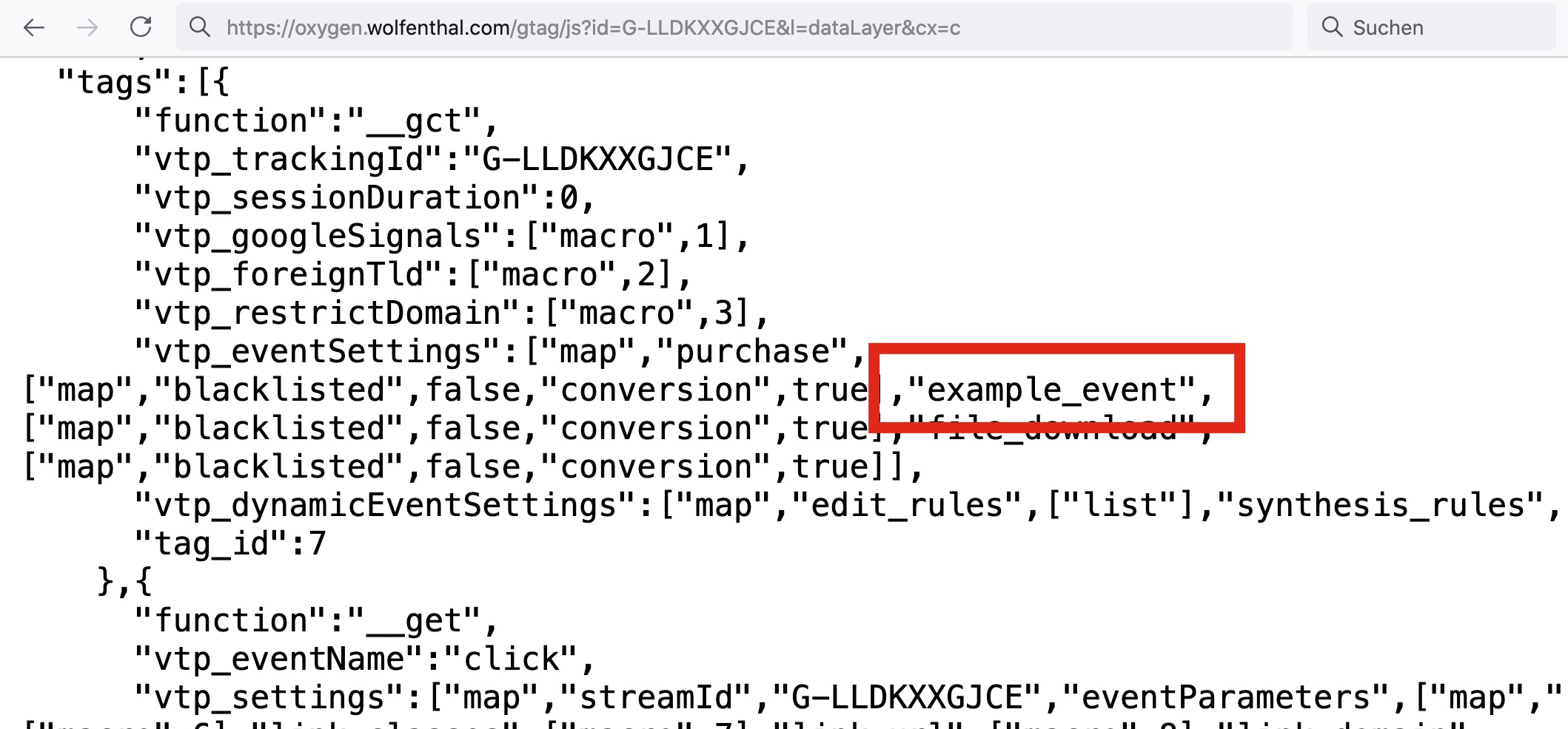 You can find your conversion events in your gtag.js file. This will be especially easy to find with Ctrl + F if you use one that doesn’t have a standard name. Like this: