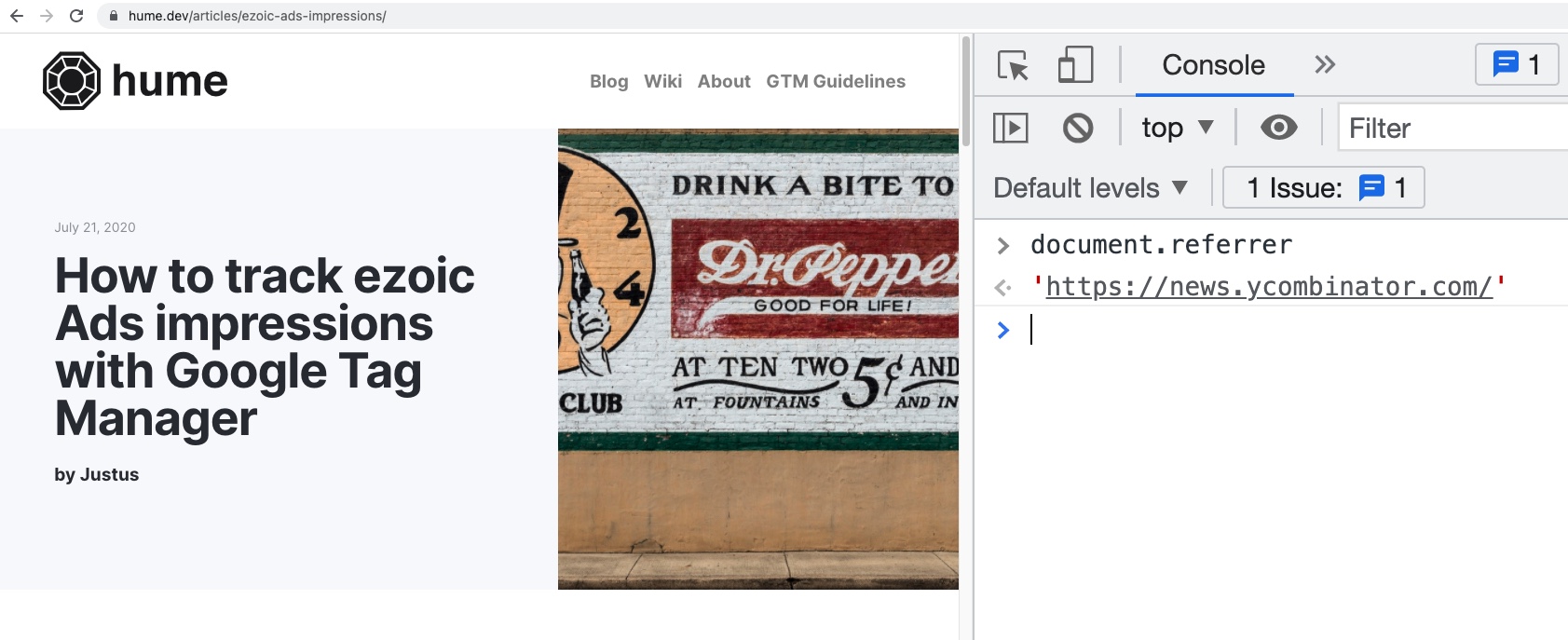 If you want to find out which referrer your browser is currently providing through the document.referrer variable, you can