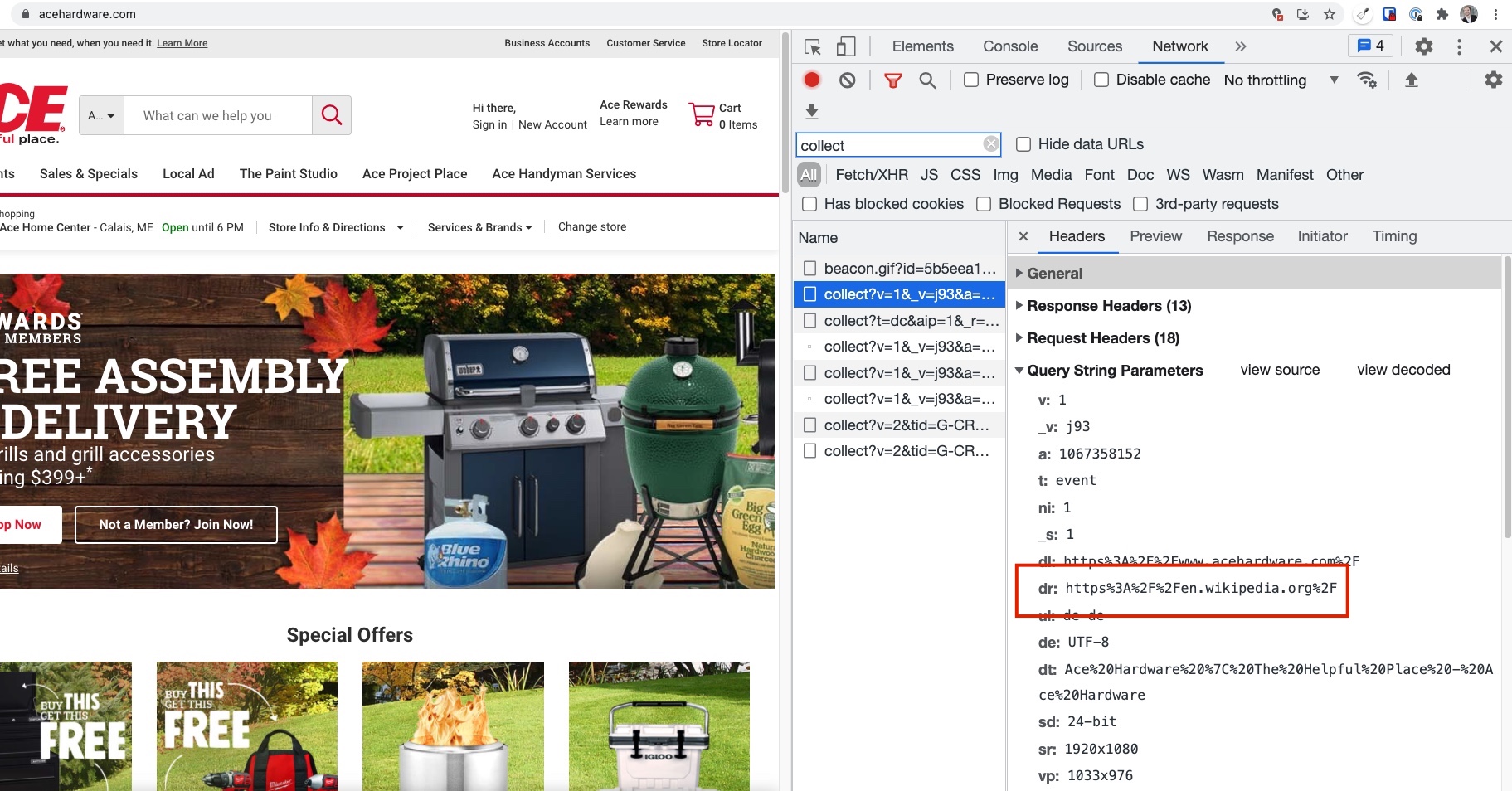 collectand find the requests going out to Google Analytics - Check the requests for the