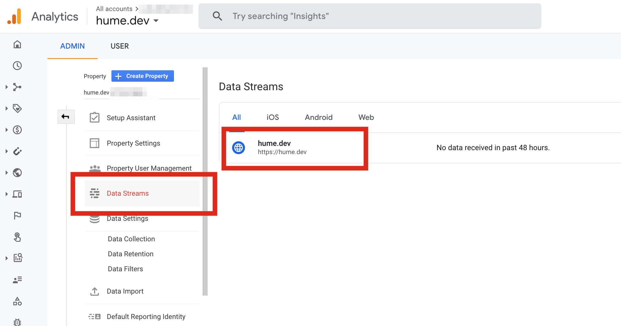 Go into your property settings and click on your Web Data Stream: