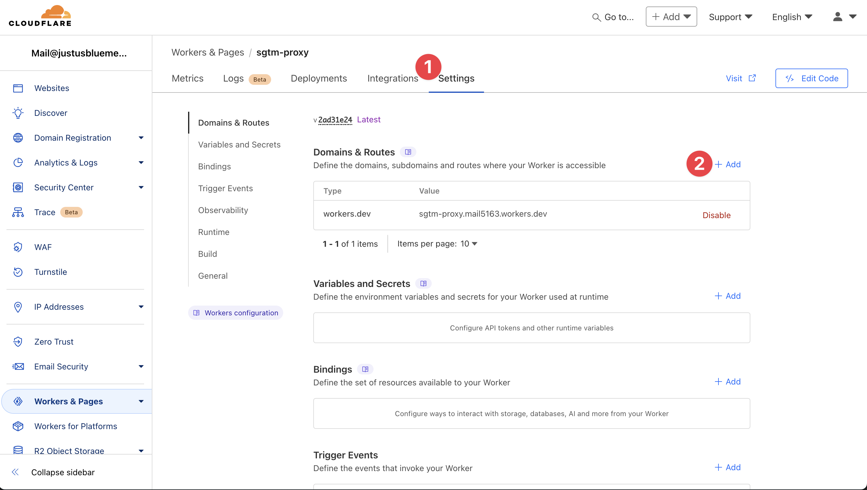 In the “Zone” field, select the domain for which you created the worker.