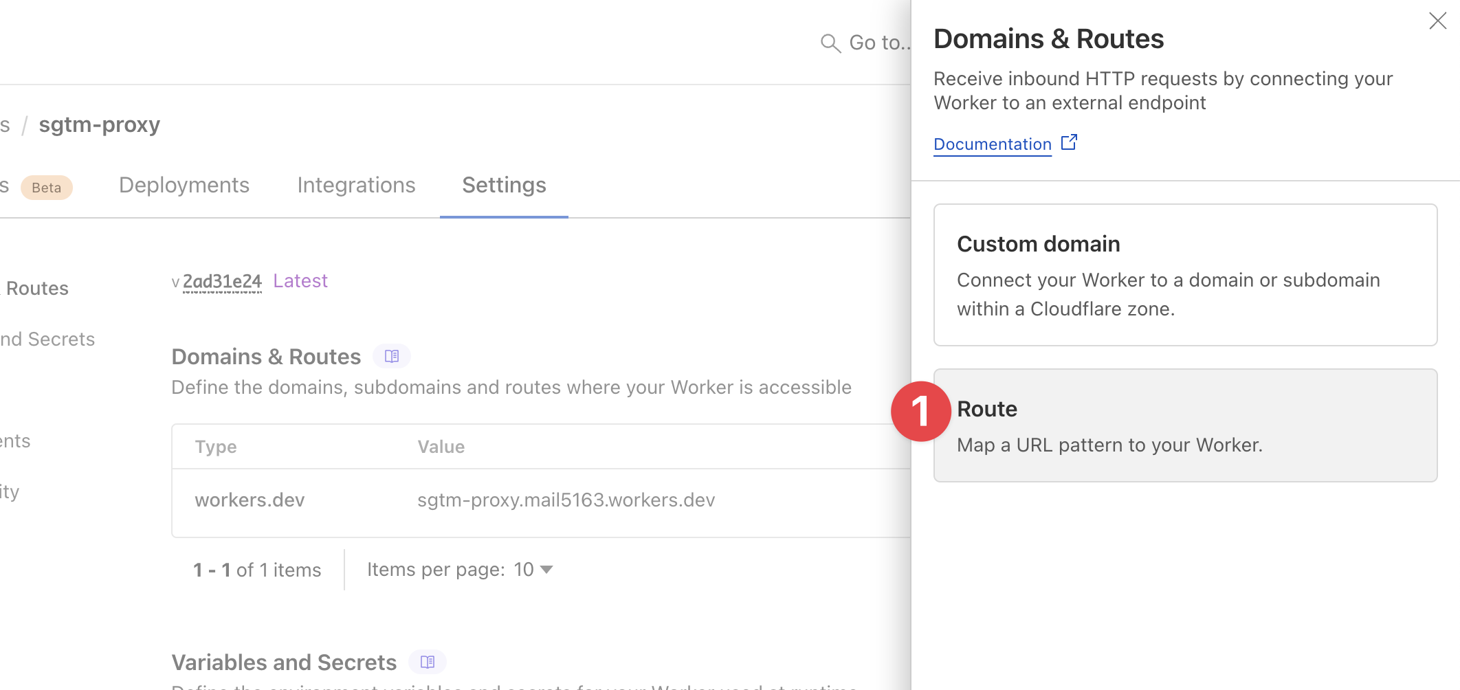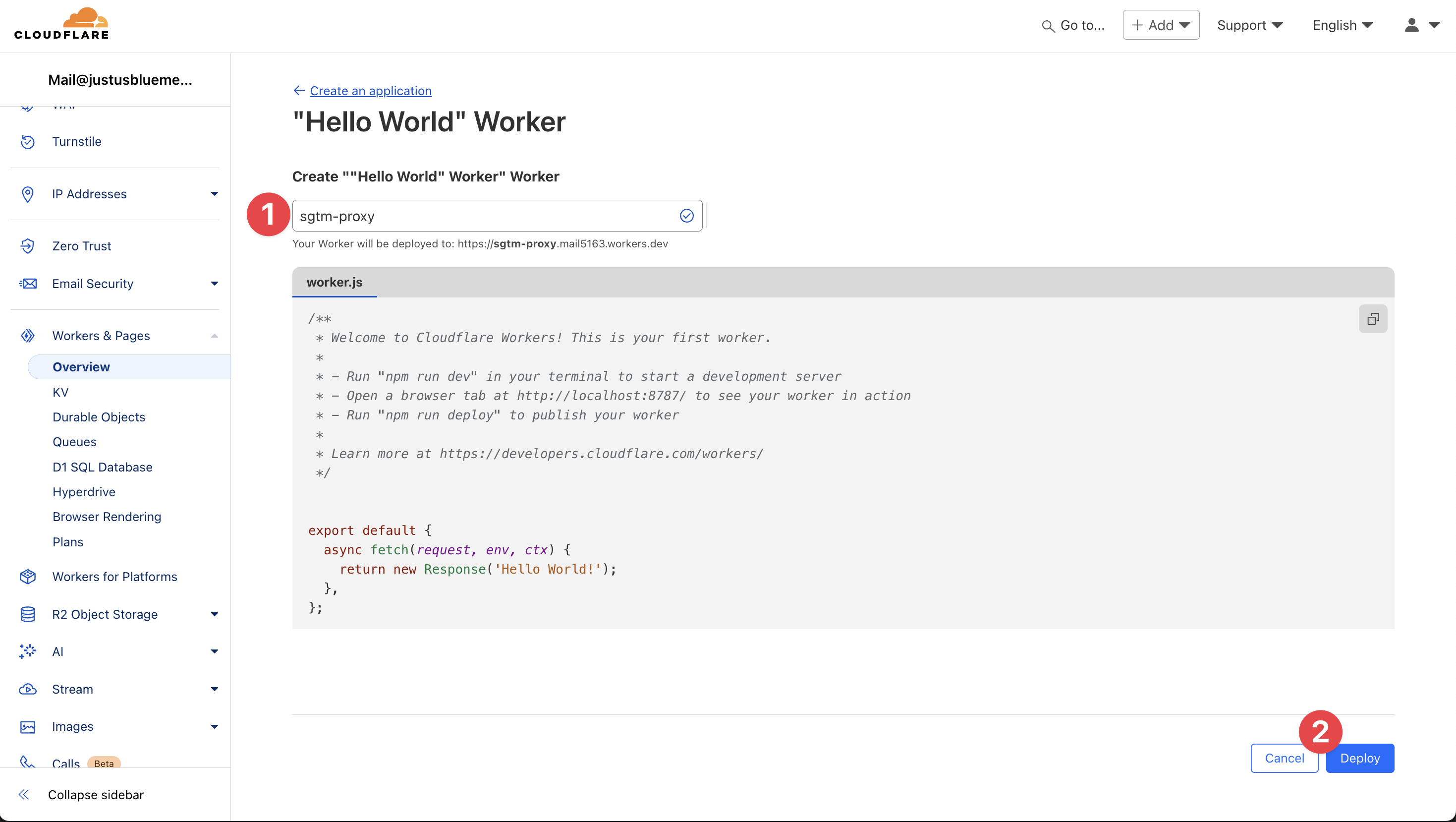Name your worker as you like; I chose sgtm-proxy.