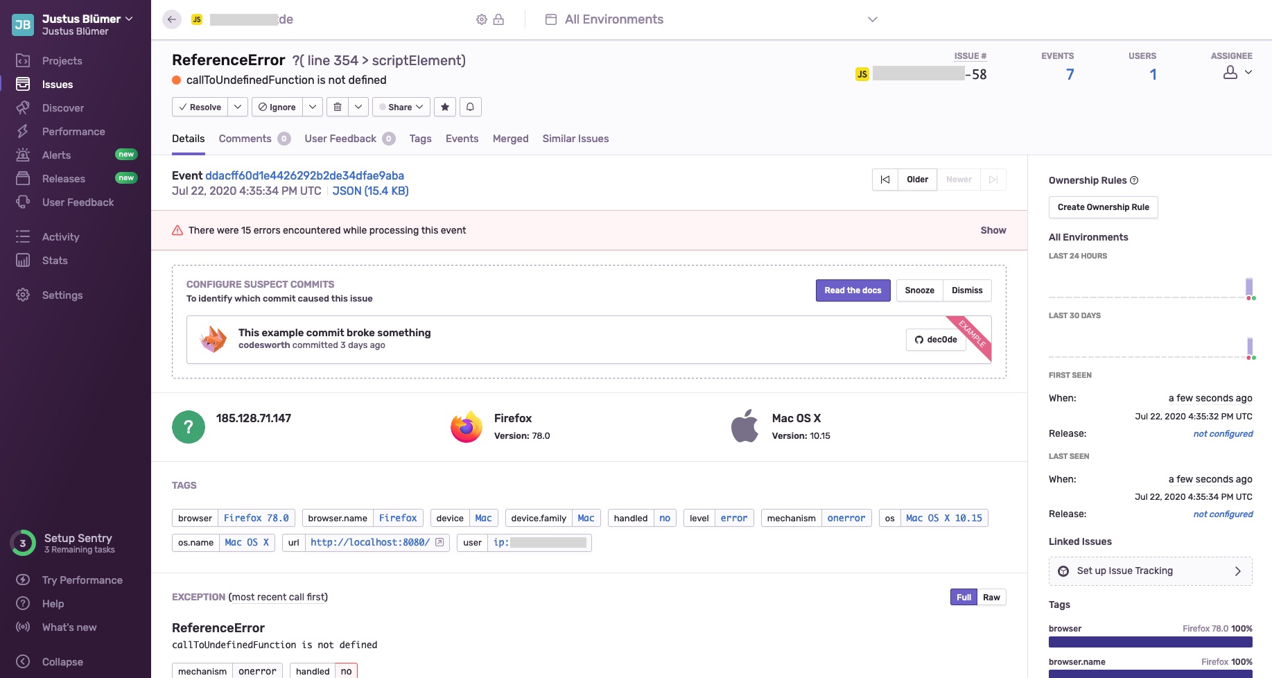 That’s it! All errors happening inside GTM will now be reported to Sentry where you can comfortably analyze and then – hopefully – fix them.