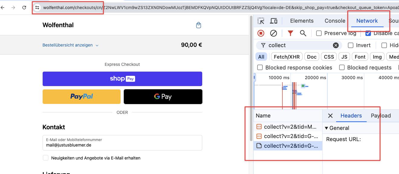 But be careful: If Shopify reliably recognizes the user and the in-house “Shop Pay” payment method is enabled, you may be redirected directly to the “shop.app” domain. This may look like a checkout, but it is not. In this case, you need to first click “Check out as guest” at the bottom of the page.