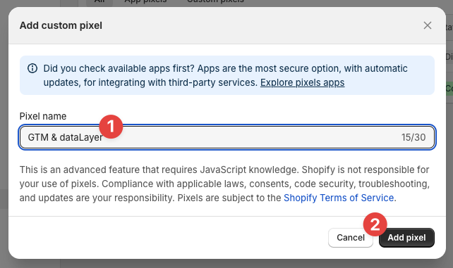 This means that the code is executed in a separate environment with intentionally limited access to some browser functions. Within Web Pixels, there’s a further distinction between App Pixels, created by Shopify Apps, and Custom Web Pixels, which are manually created by the shop owner.