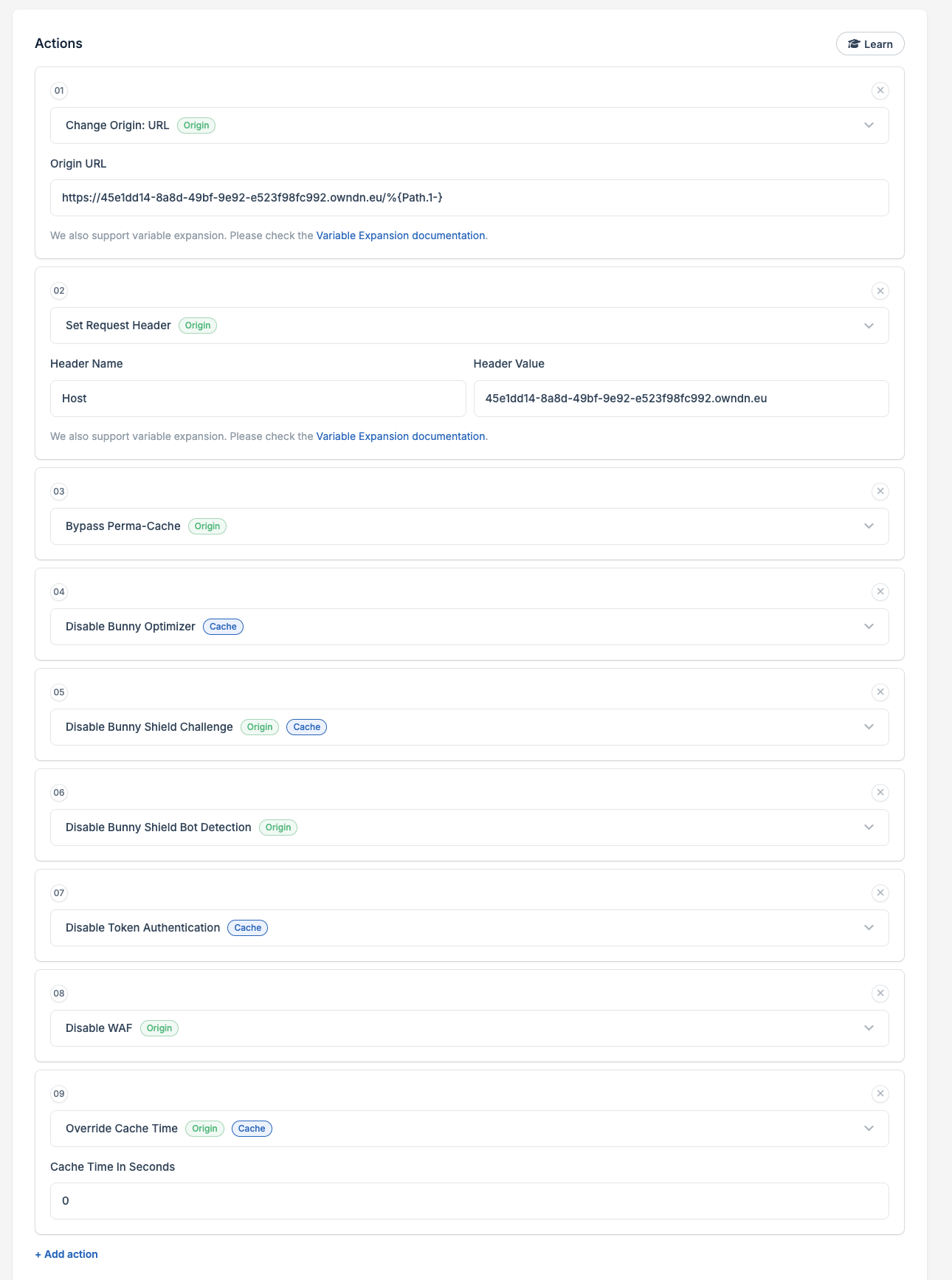 - Type: Disable Bunny Shield Challenge (Origin, Cache)
