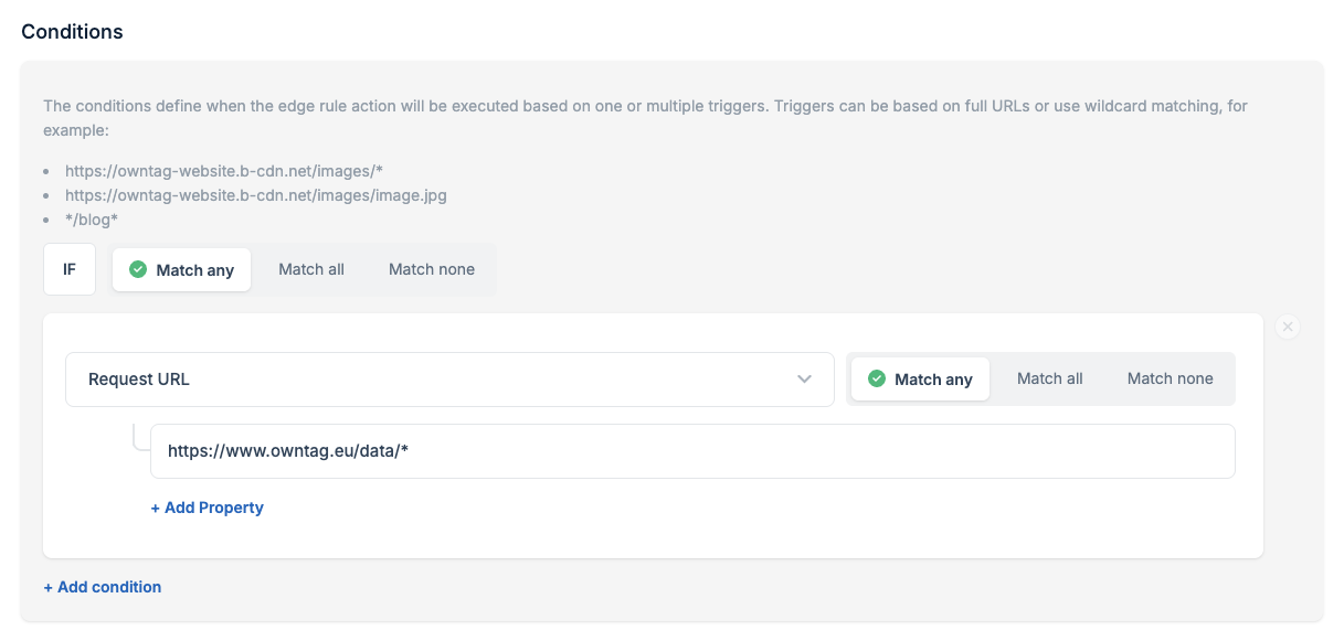 This condition ensures that the Edge Rules only apply when a request is made to the specific directory where your Server-Side GTM is intended to run.