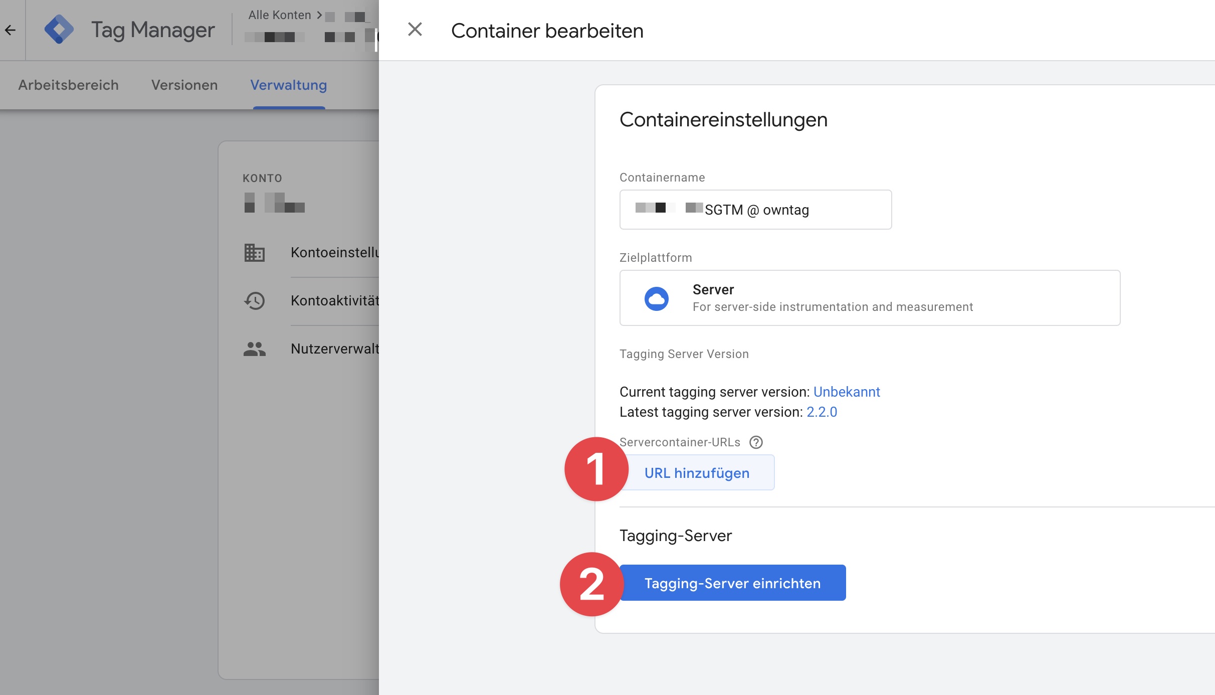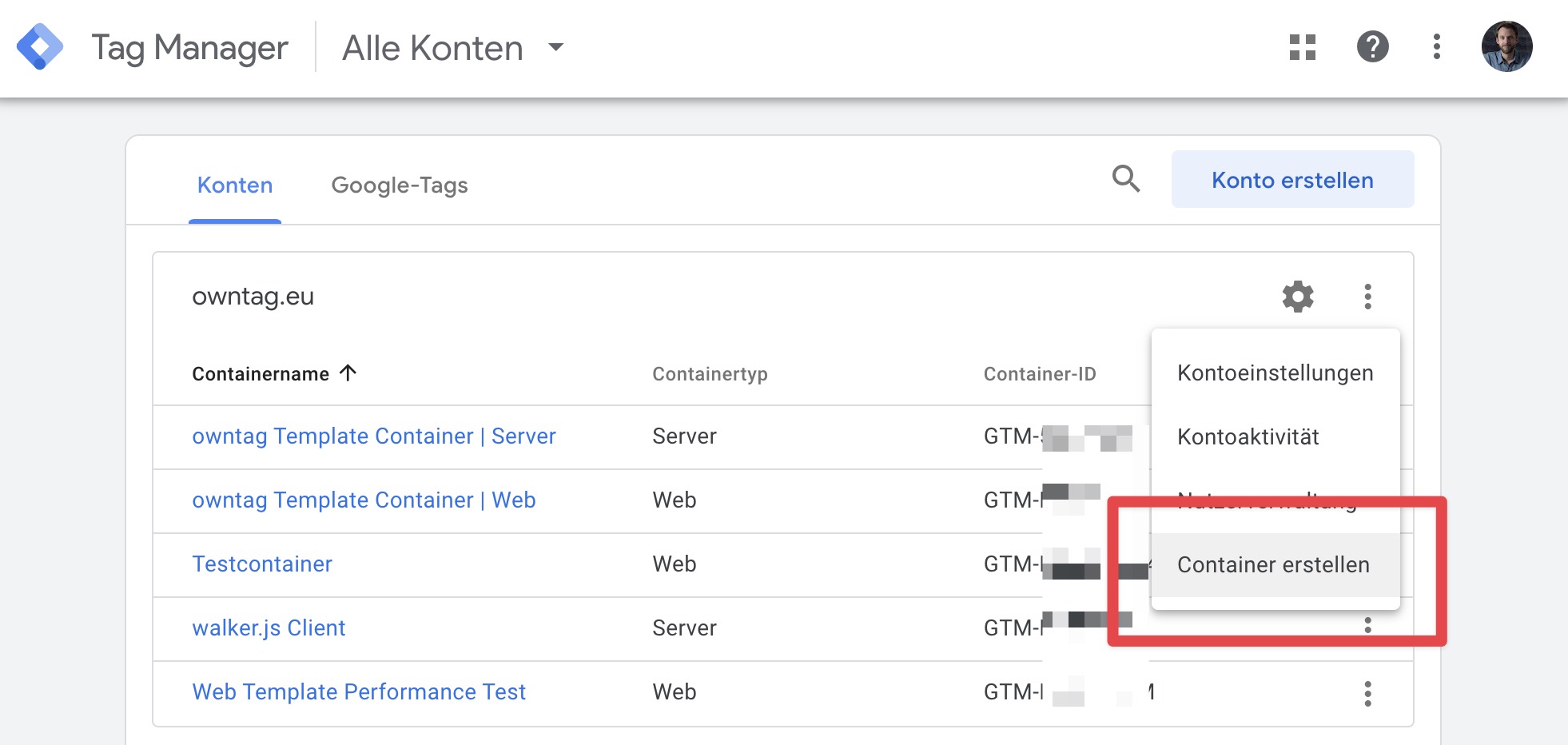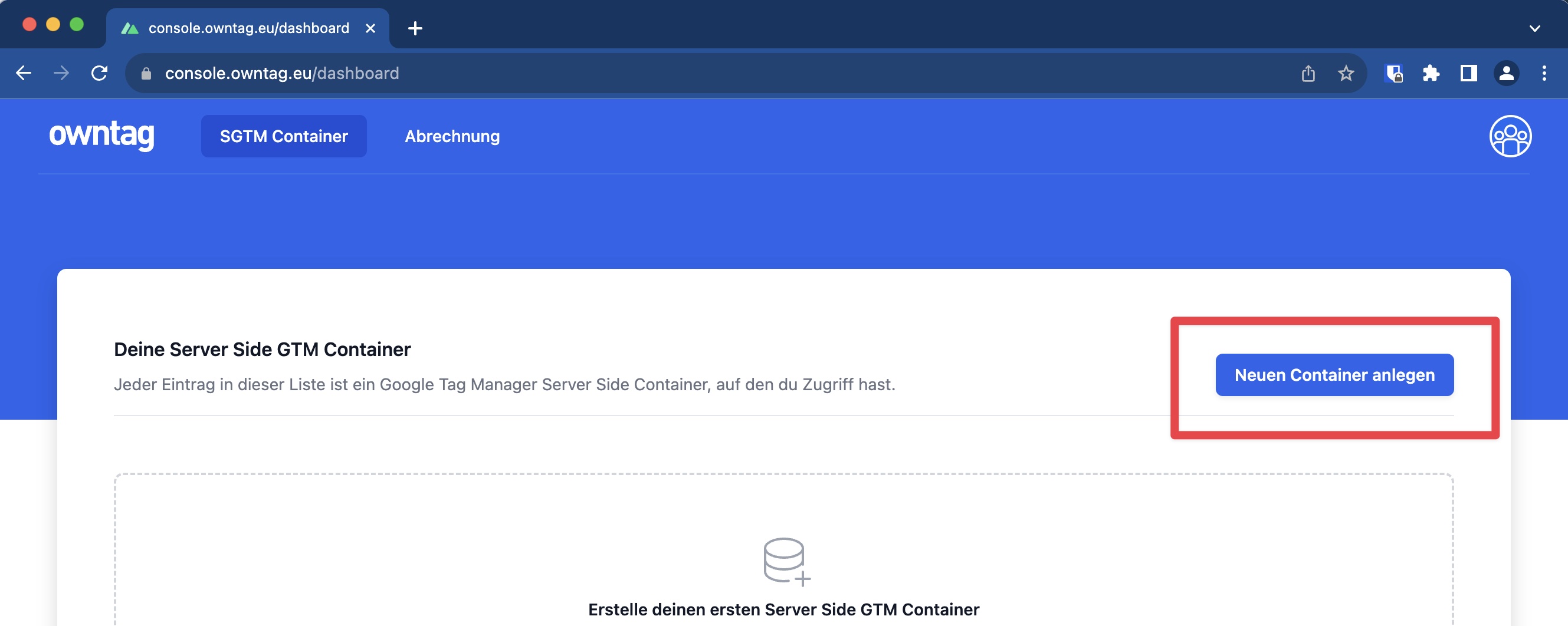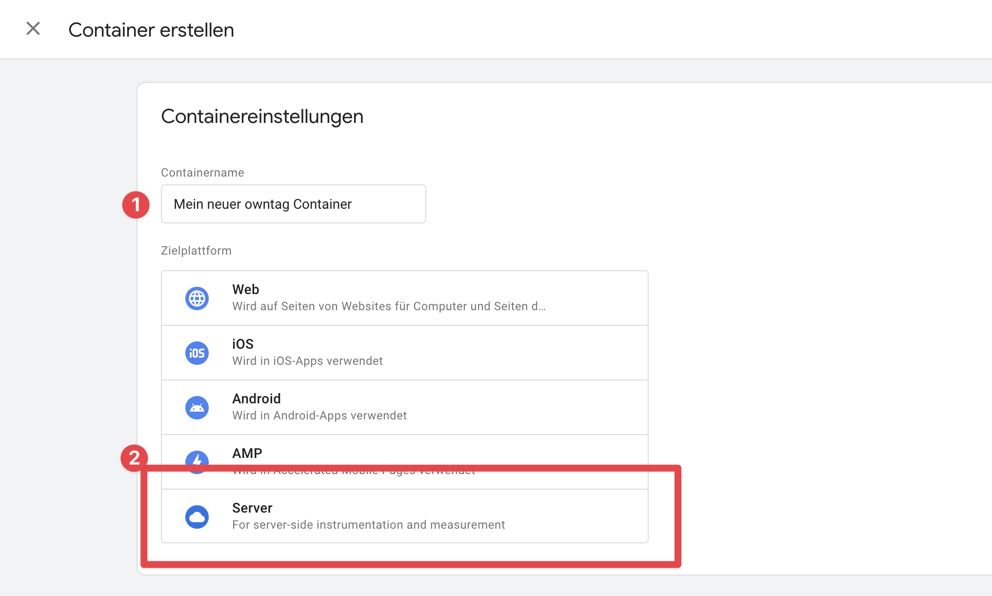 Before you can start hosting your Server Side GTM container with owntag, you must create a container in your Google Tag Manager account.