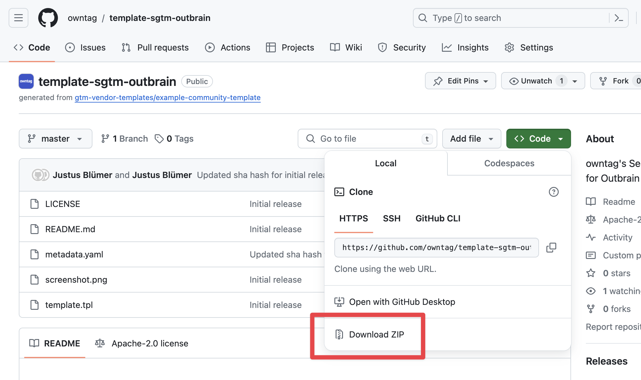 First, download the Outbrain Tag Template from Github: