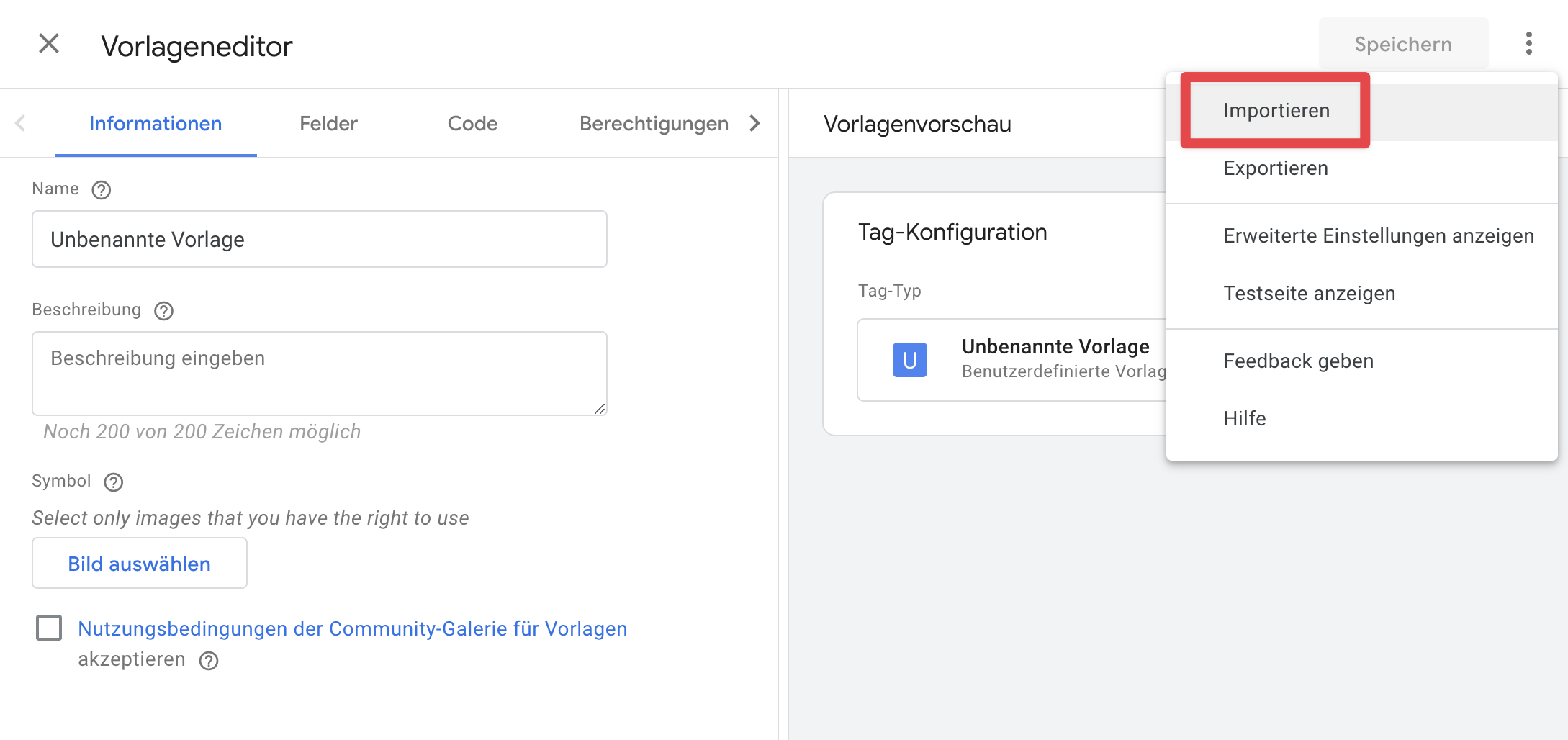 In your Google Tag Manager Server Side container, go to the “Templates” section. Under “Tag Templates,” click the “New” button and import the downloaded template: