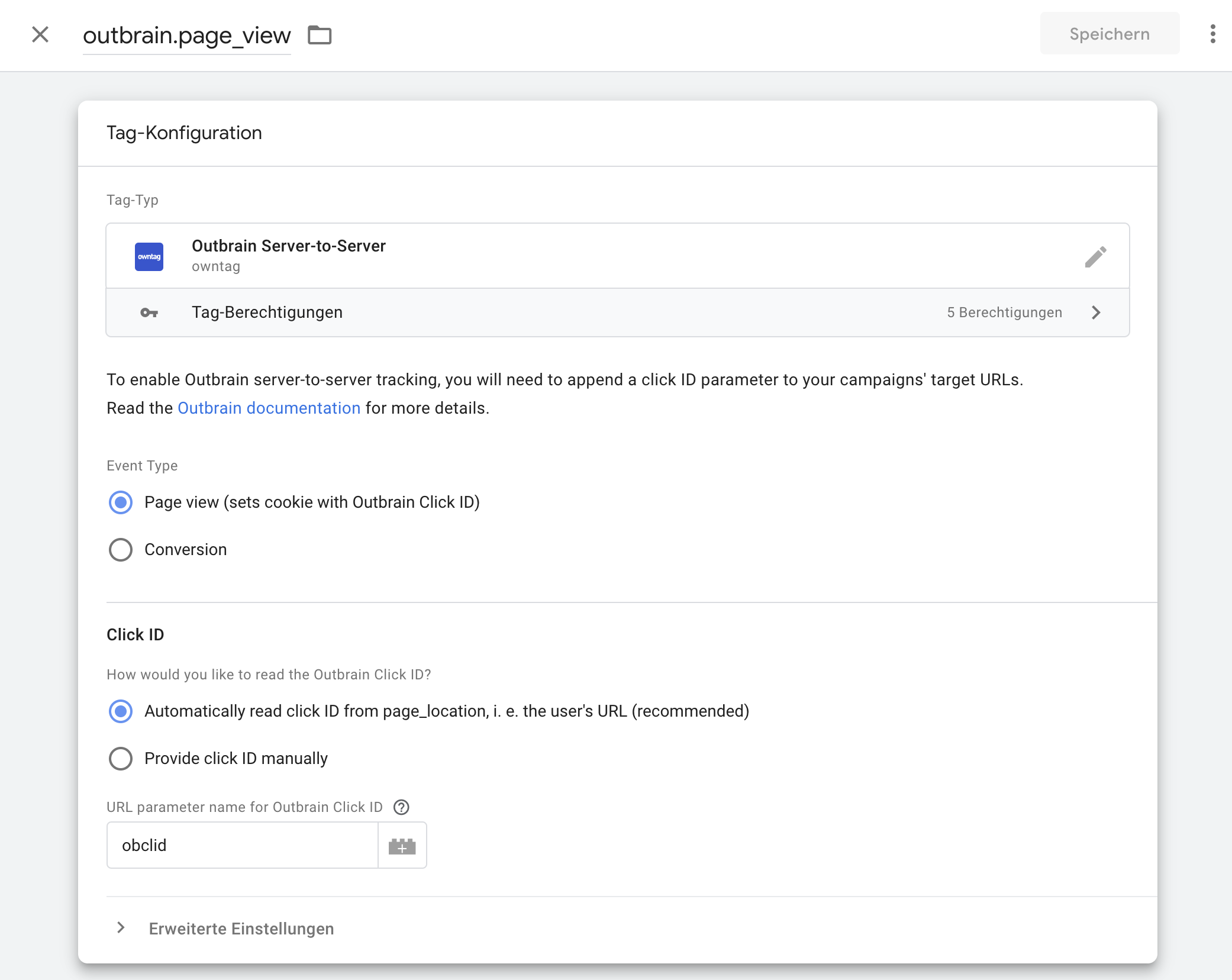 Configuring the Outbrain Pageview Tag